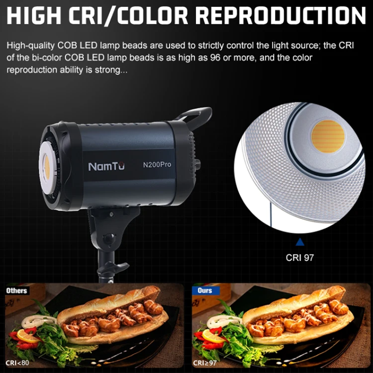 Klicken Sie hier für weitere Rabatte!!!ProduktbeschreibungModellA200XProEingangsspannungWechselstrom 110V-240V einstellbarAusgangsleistung200WFarbwiedergabeindex96+Farbtemperatur2700-6500KLED-Anzahl1 Stück1 Meter Beleuchtungsstärke18000LuxLichtwinkel120°Dimmbe...