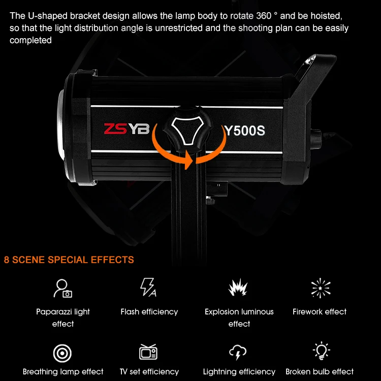 Klicken Sie Hier Für Mehr Rabatte!!! Produktdetails Modell Y500D Eingangsspannung AC 200-220V Ausgangsleistung 430W Farbwiedergabeindex 97 Korrelierte Farbtemperatur 2700K-6500K LED-Anzahl 1STL Helligkeit 60000lm Beleuchtungsstärke bei 1 Meter 17000-19000lux (nur Licht ohne...)