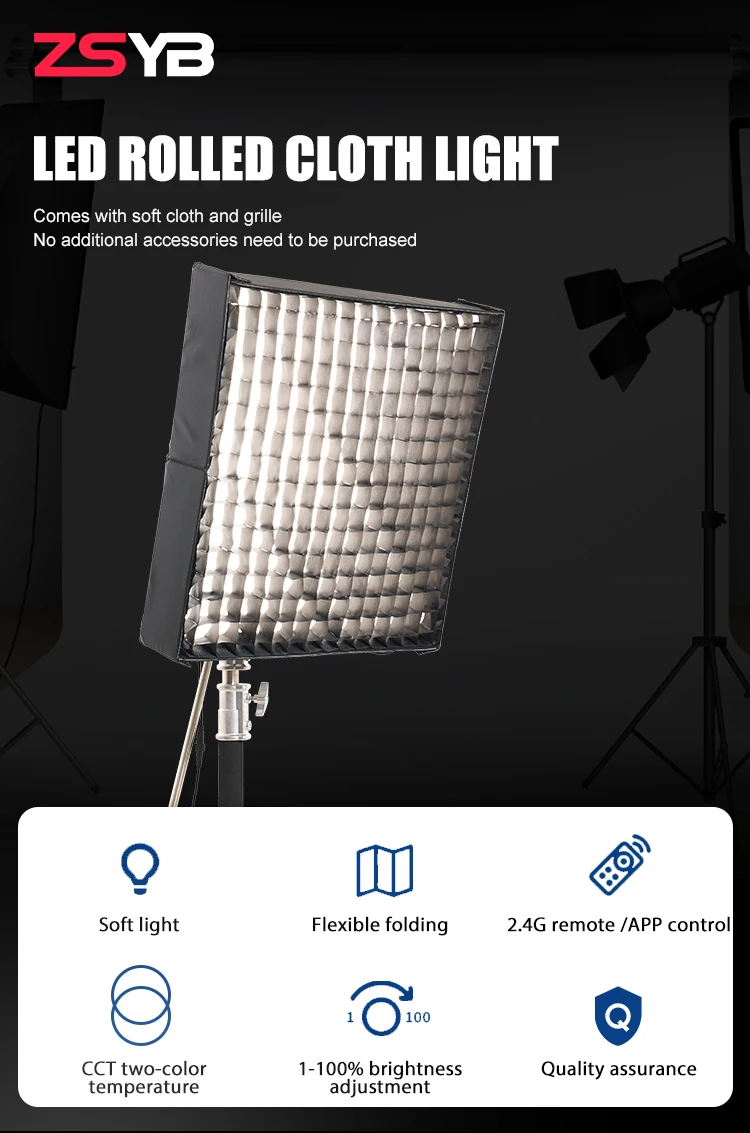 ZSYB Customize 150watt Camera Photographic Rolling Lighting 60*60 Led Cloth Lighting Photo Studio Accessories details