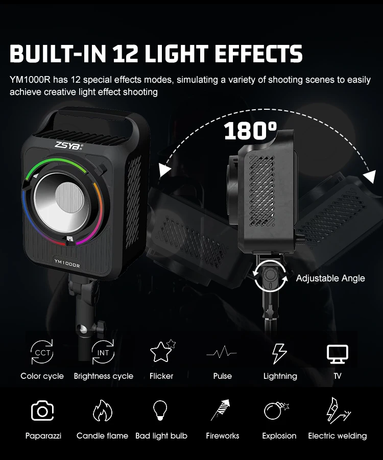 ZSYB Diese 200W LED-Fotografenleuchte ist für Outdoor-Vlog-Aufnahmen mit herausragender Qualität konzipiert. Sie verfügt über einen Griff, damit Schaffende unterwegs stabil operieren können. 200W hohe Leistungsausgabe, ausreichendes Licht, keine Angst vor komplexem Outdoor-Licht. RGB-Farbmodus in Kombination mit Dimmfunktion zur Erstellung einer Vielzahl von Atmosphären. Ihre präzise Verarbeitung und hohe Leistung bieten professionelle Beleuchtungsunterstützung für Outdoor-Videoerstellung.