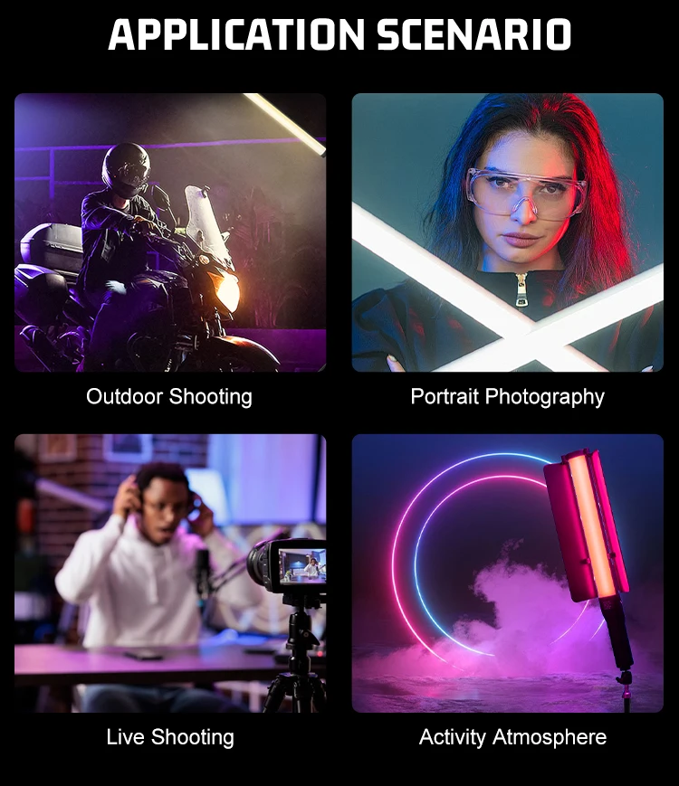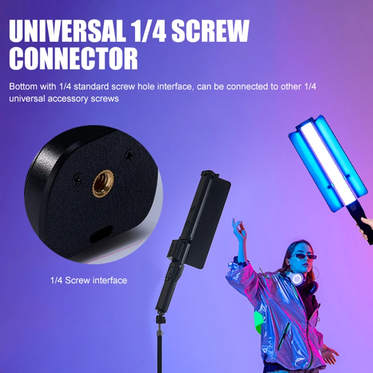 ZSYB is a powerful photography light stick that can be remotely controlled by App to easily realize RGB color switching and dimming operation, adapting to different scene atmosphere requirements. 2700-7500K color temperature range, from warm yellow light to cool white freely change. The light stick is lightweight and portable, supports hand-held, and is convenient for flexible lighting in shooting, bringing creative light and shadow effects to video creation.