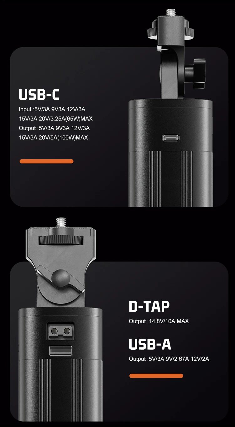 ZSYB Universal 1/4 Screw Power Bank Light Holder USB-C PD Input Output D-Tap Battery Grip for Outdoor Fill Photographic Light details